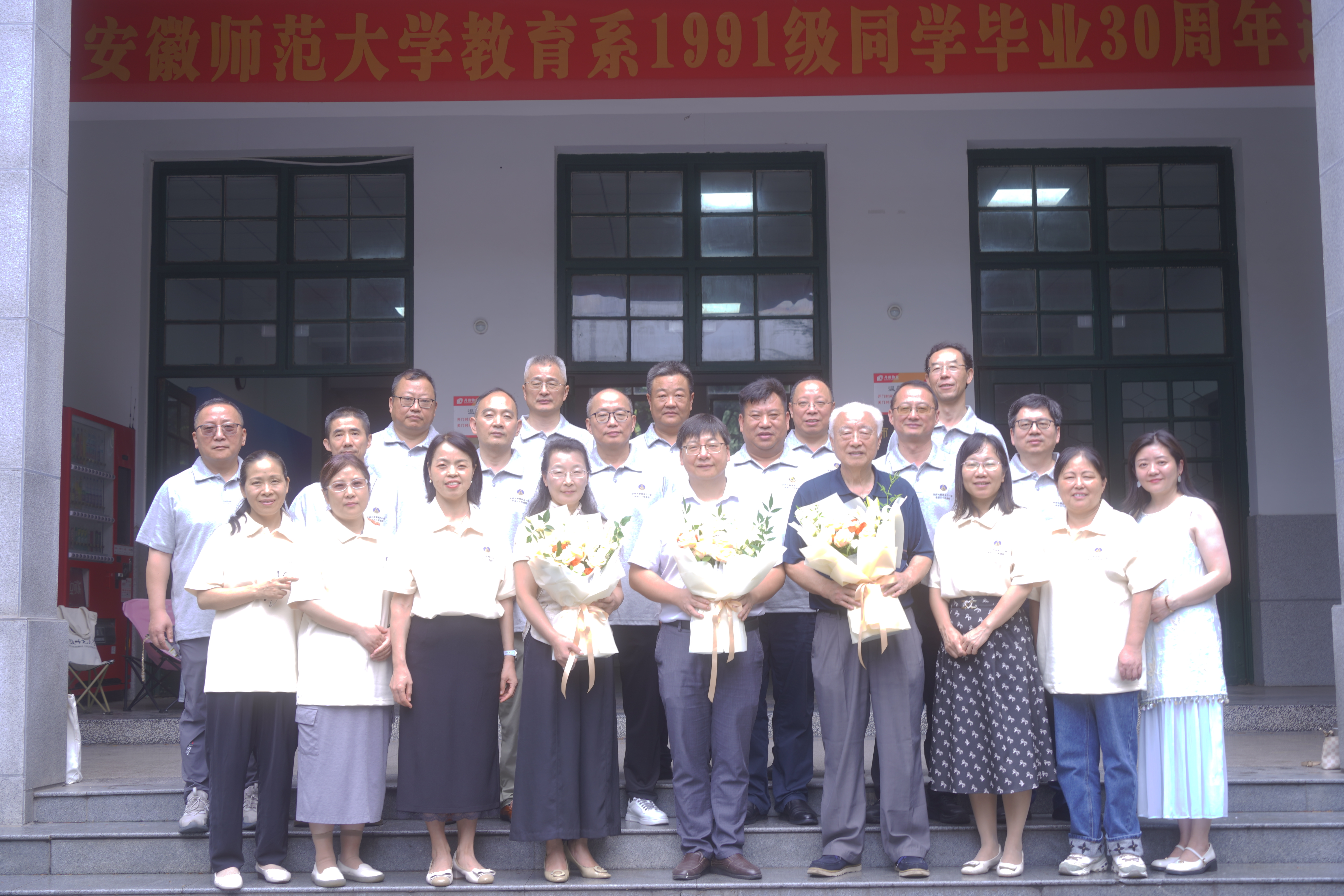 2025年8月1日至3日,安徽师范大学教育系91级二十位校友从五湖四海奔赴芜湖,在毕业三十周年之际重返母校。安徽师范大学副校长桑青松,365英国上市官网党委书记许国飞、院长吴文涛,时任辅导员王在广、许琦及部分任课教师应邀出席,与校友们共赴一场跨越三十年的青春之约。