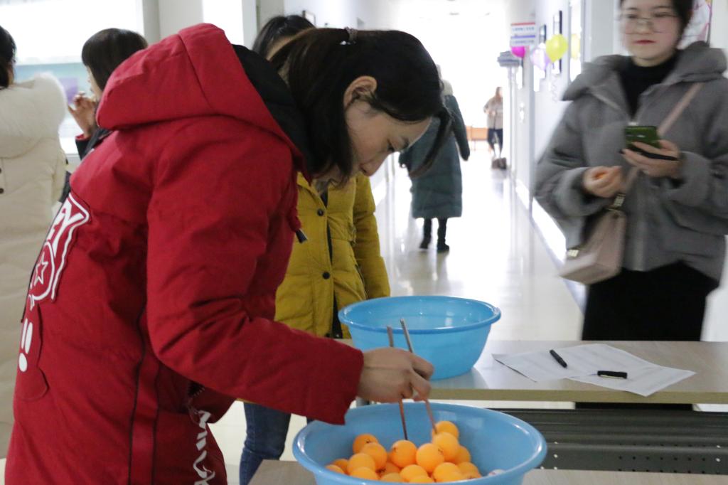 与DIY口红同时开始的还有学院工会组织的其他游艺项目,各种游艺活动吸引了到场的每一位老师的关注,为现场增添了浓浓的年味。游戏的欢快让老师们仿佛回到了童年,让大家尽情地放松了一把。套圈、通俗桥牌、筷子夹乒乓球、定点投标、足球射门等游戏,集趣味与技巧为一体,大家饶有兴致的参加每一项游戏,呐喊声、加油声、鼓掌声充满整个现场,欢乐、温馨、和谐成了贯穿整个游艺活动的主旋律。游艺活动使教职工们放松了身心,增强了教职工集体的凝聚力和荣誉感,有助于大家在工作中劲往一处使,汇智聚力,在各自的岗位上不断为学院发展贡献力量。