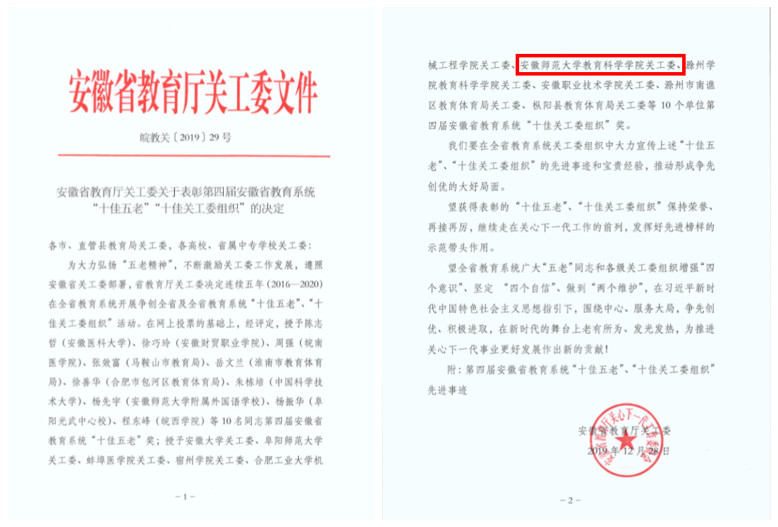 365英国上市官网关工委将以此次获评安徽省教育系统“十佳关工委组织”作为前进动力,进一步增强“四个意识”、坚定“四个自信”、做到“两个维护”,在习近平新时代中国特色社会主义思想指引下,不忘初心,牢记使命,积极进取,发挥余热,为关心下一代事业作出新的贡献。