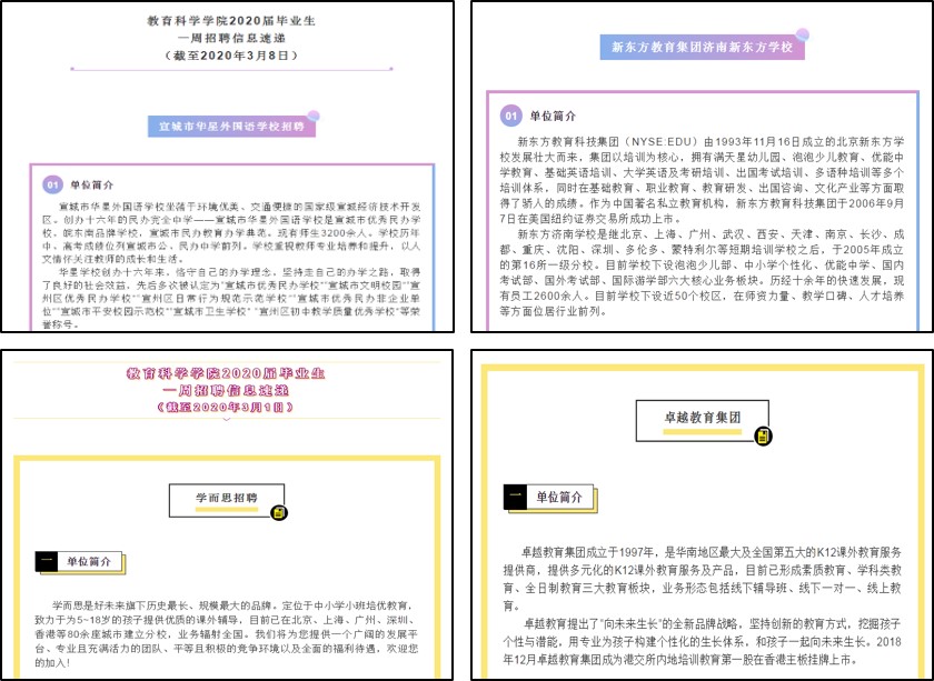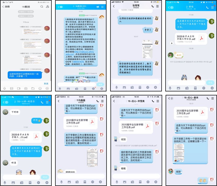 原定于三月举办的校园师范生专场招聘会和教科院春季专场小型双选会等线下招聘活动由于此次疫情已暂停举办。学院第一时间启动应急响应服务机制,畅通就业信息线上发布渠道,改变服务模式,线下转为线上,通过安徽师范大学就业服务网、招生就业微信公众号、就业招聘QQ群等线上平台及时推送招聘信息。此间,以保研学生组建的就业帮扶小组坚持“招聘信息及时推送、调剂信息精准推送、复试技巧有效推送”总要求,搜集整理包括“空中招聘会”在内的各类网络招聘会信息8条,调剂信息7条,各类招聘公告和岗位信息64条,尤其通过信息调研和线上交流等方式主动跟进家庭经济困难毕业生、湖北籍毕业生以及报考湖北地区高校的准复试毕业生的就业意向和复试状态,按照“重点关注、重点推荐、重点服务”的原则,在心理疏导、政策解答及服务保障方面提供及时的就业帮助。