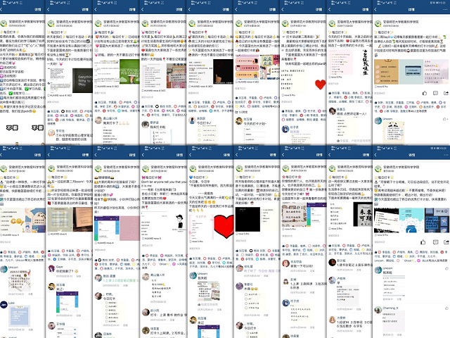 在线学习期间,学院利用官Q组织教科院全体同学参与每日打卡活动,通过评论留言晒出自己的今日计划,每一位同学既是实践者又是监督者,在陪伴与竞争中不断进步。截至目前,该线上打卡活动已持续70余天,累计参与千余人次。长期以来,官Q作为教科院宣传的重要媒介之一,及时发布学院活动信息,公布学院各项赛事成果,为同学们提供了获取信息的方便通道。