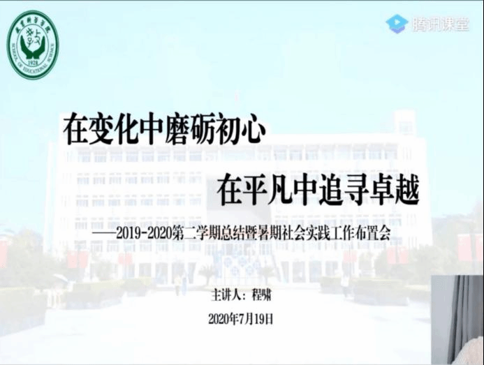 本网讯(教科院 孙正璐 程啸)7月19日晚7:30,我院2018级辅导员兼院团委书记程啸通过腾讯课堂面向2018级召开2019-2020第二学期总结会暨2020年大学生暑期“三下乡”社会实践工作布置会。