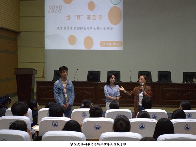 晚上七点,教科院党委副书记张如华,辅导员蔡文、梁冬及全体新生于科技小礼堂召开了20级新生的第一次班会。会议伊始,张如华书记首先进行自我介绍,并简单地介绍了两位新生辅导员。张如华代表学院对2020级新生表示热烈的欢迎,幽默诙谐的语言使得全场气氛活跃起来。会议中,梁冬结合自身经历,提出了大学生活具有“自我”的特点并指引新生如何过好大学生活,围绕大学生活这一话题,梁冬邀请同学阐述了自己对未来大学生活的规划,同学们积极踊跃发言,对未来生活的向往溢于言表。蔡文就大学生防诈骗进行了讲解,用一个个实例告诫新生提高警惕意识,并对新生近期活动安排以及军训注意事项进行了补充强调。会议在三位老师与全体20级新生合照完毕后圆满结束。