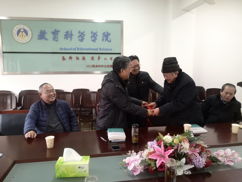 会上,院长李宜江从党建、教学、科研、社会服务、学生工作等方面简要介绍了学院近年来发展建设情况。杨克贵老先生愉快地回忆了教科院创办及发展的历史,对学院建设发展所取得的成绩表示欣慰与赞赏,勉励学院领导班子要再接再厉推进学院新发展。阮成武、周兴国就学院科研发展、人才队伍与平台建设等方面提出了意见建议。