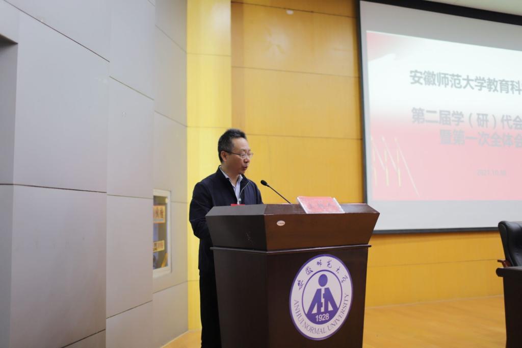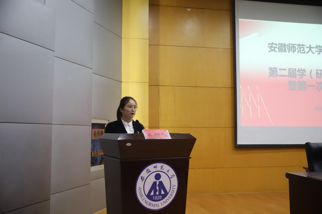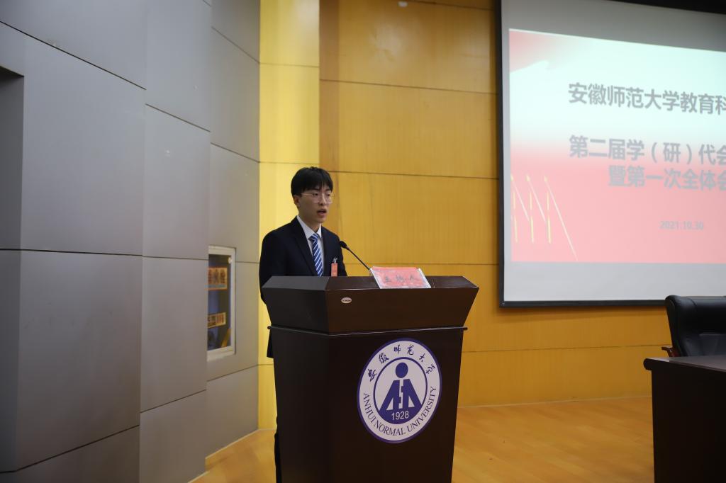 在第一次全体代表会议上,2020-2021学年教科院学生会主席刘玉瑾以及研究生会主席姜惠玲代表院团委学生会和院研究生会做工作总结报告。