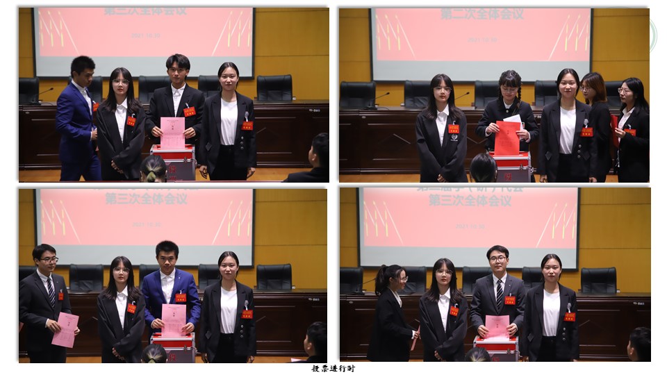 晚20点30分,学代会第二次全体会议进行。大会首先表决通过了大会选举方法以及监票人、总监票人和总计票人名单。在总监票人和监票人的监督下,到场的62名代表通过无记名投票方式选举产生了学院参加校学代会(研代会)代表、院学生会(研究生会)主席团成员以及院学生(研究生)委员会成员,第二次全体会议顺利结束。