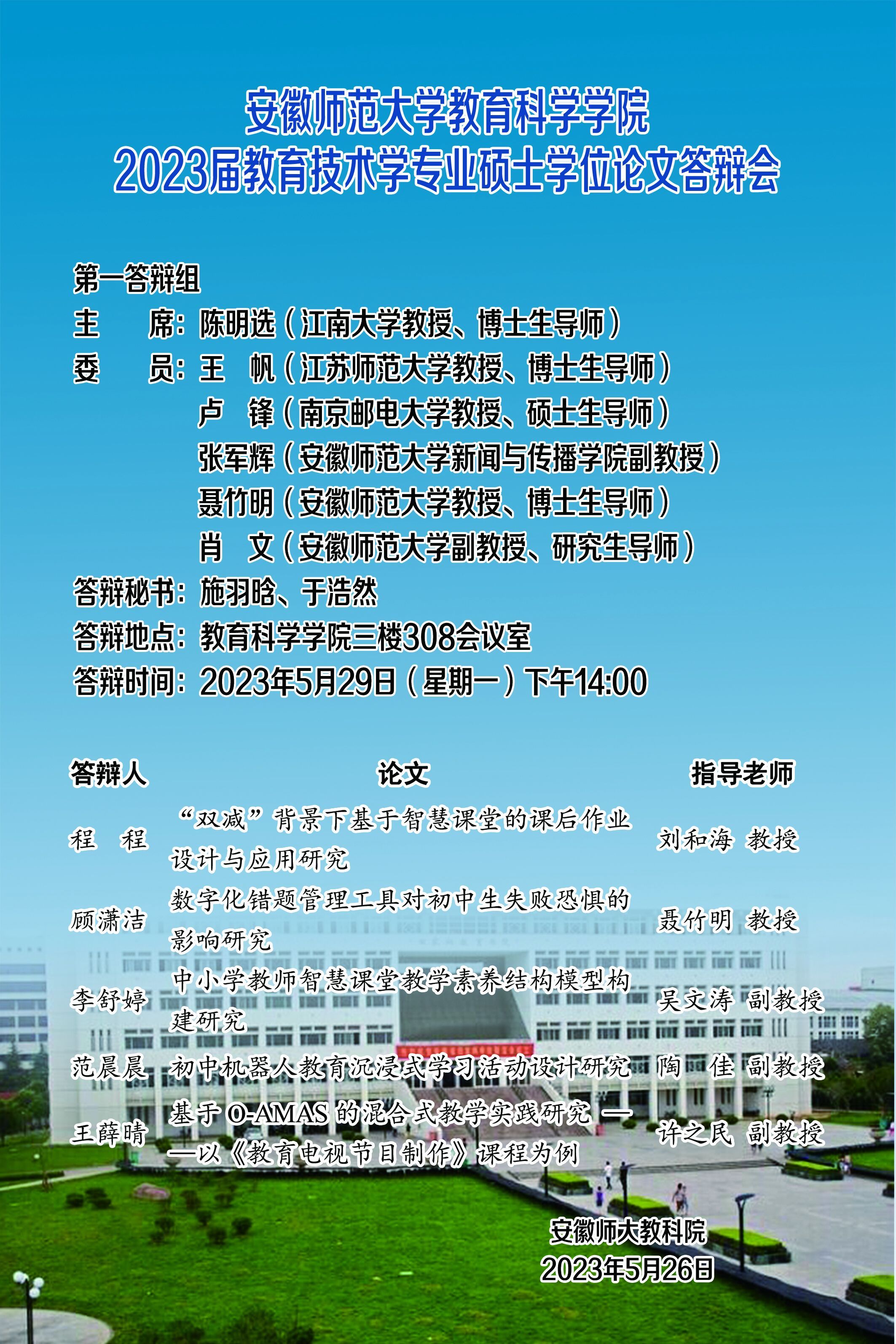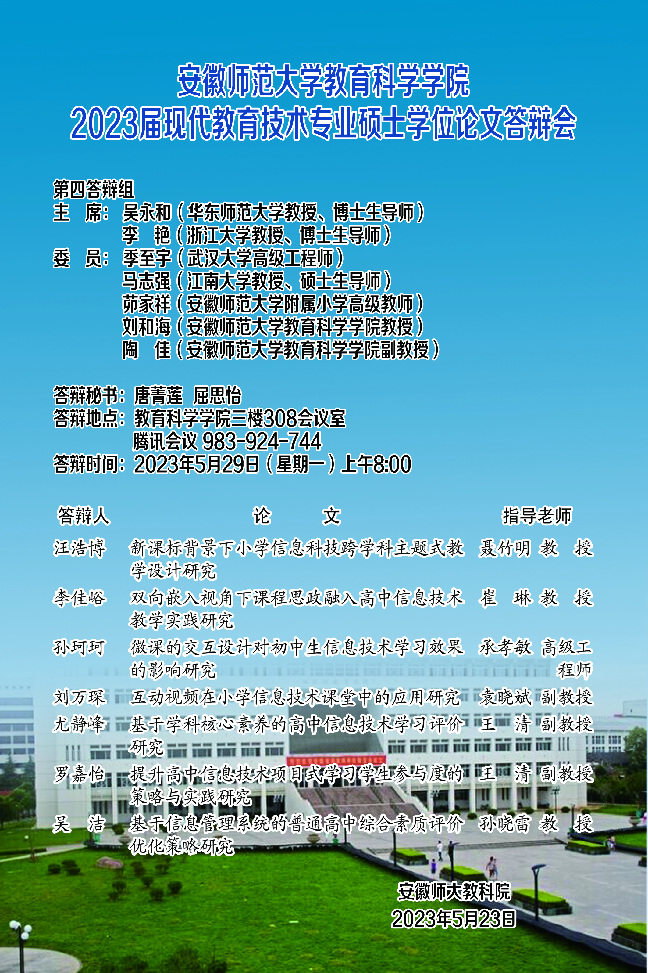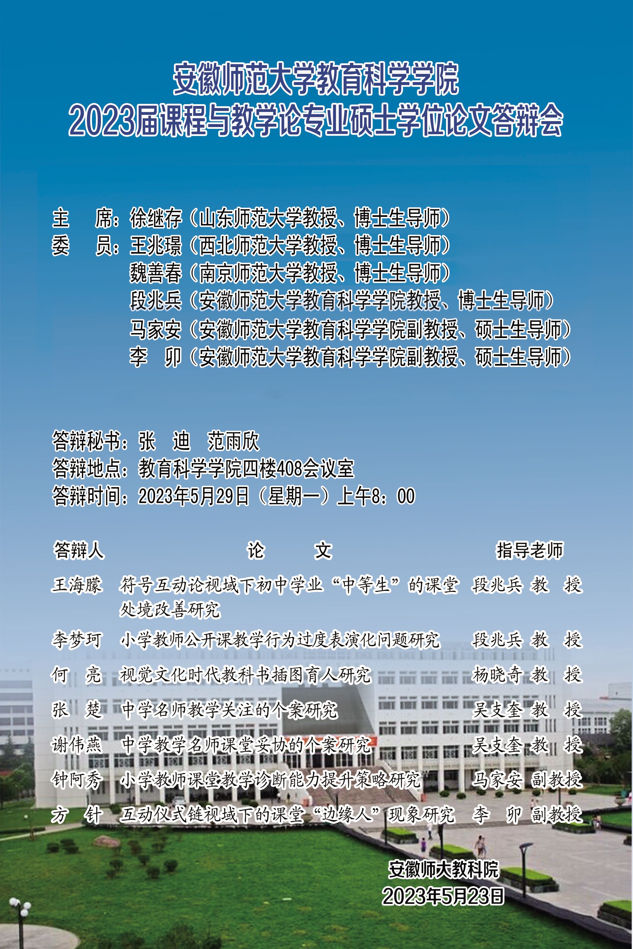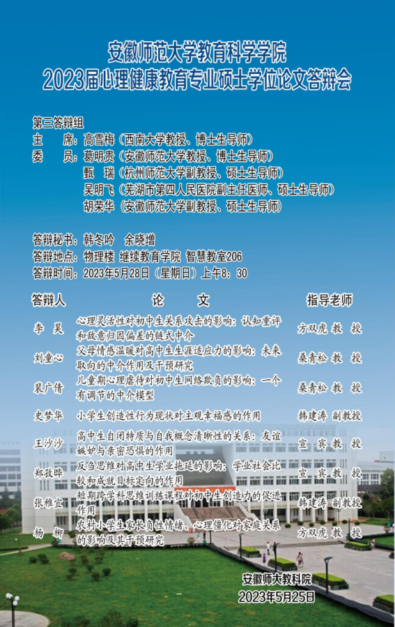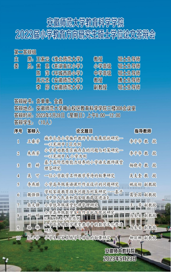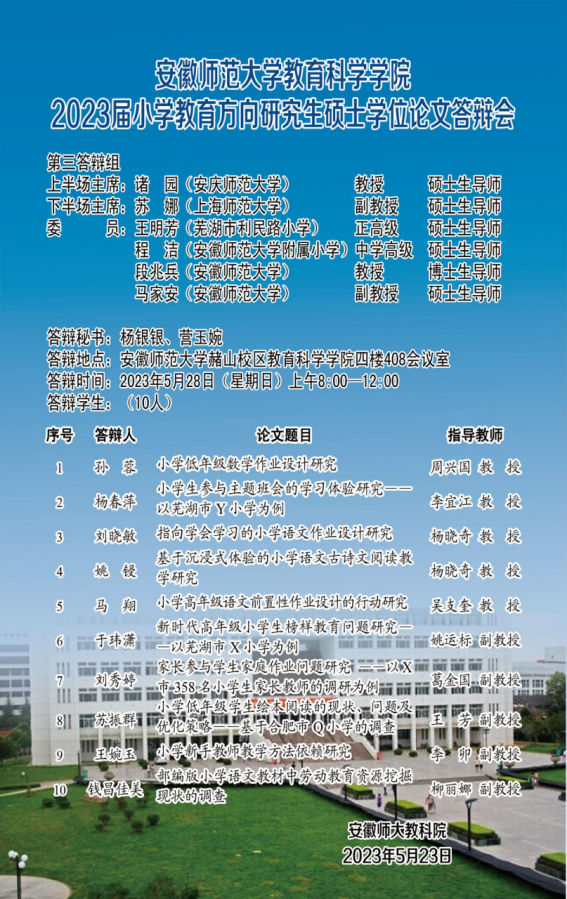 365英国上市官网2023年上半年硕士研究生学位论文答辩公告(三)