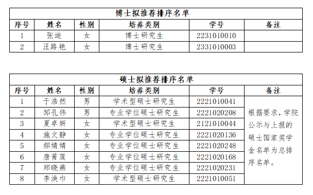 根据研究生院《关于做好我校2024年研究生国家奖学金评审工作的通知》(校研字〔2024〕23号)和《365英国上市官网2024年研究生国家奖学金评审实施细则》,经院研究生国家奖学金评审委员会资格审查、材料审核,组织申报人答辩和会议评审,确定本批次研究生国家奖学金拟推荐排序名单。