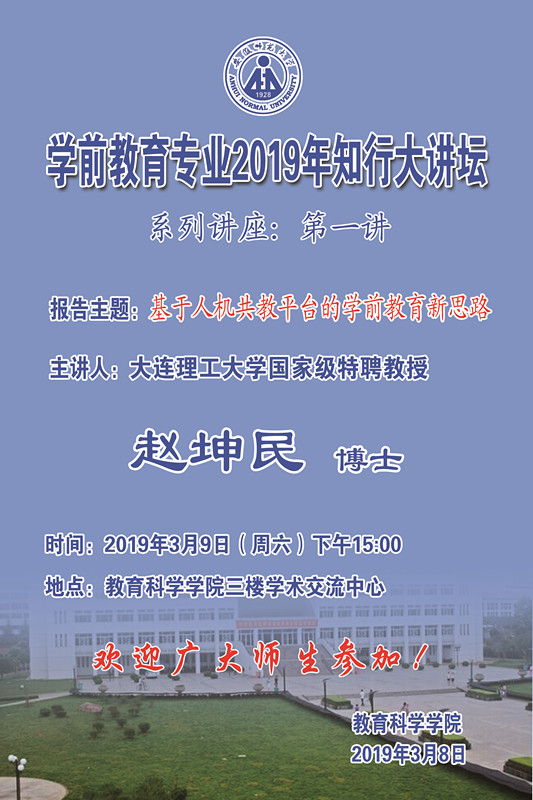 学院学术报告预告——学前教育专业—2019年知行大讲坛(第一讲)