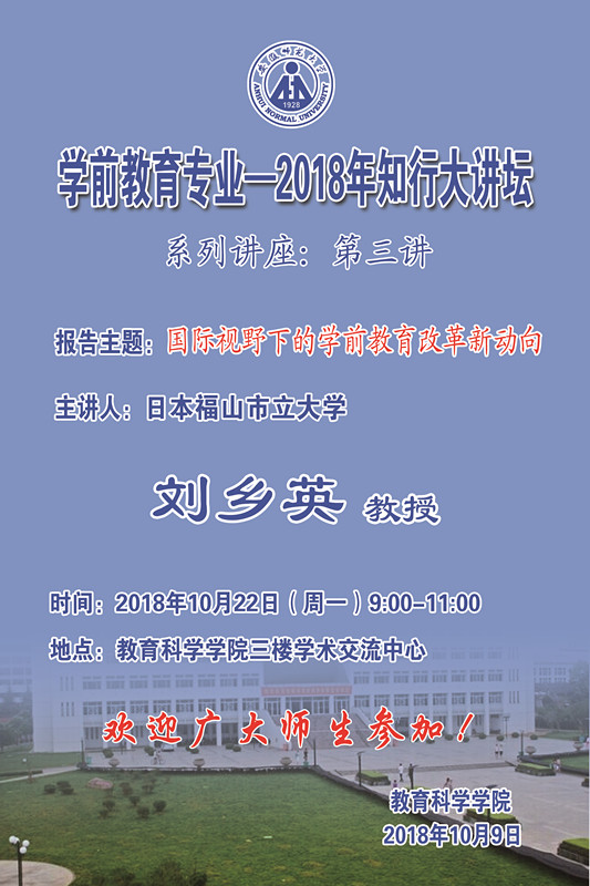 学术报告预告:学前教育专业—2018年知行大讲坛(三)国际视野下的学前教育改革新动向