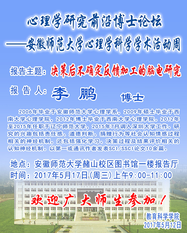 学术报告预告——深圳大学心理与社会学院李鹏博士学术报告