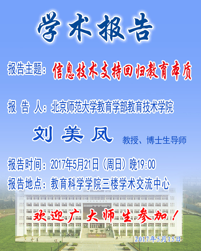 学术报告预告——北京师范大学教育学部教育技术学院刘美凤教授学术报告