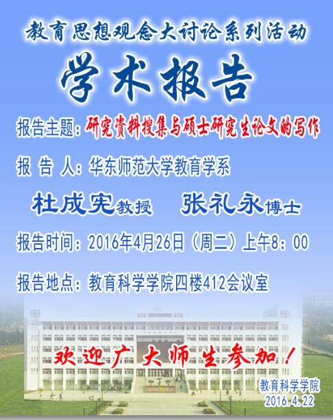 学术报告预告——华东师范大学教育学系杜成宪教授、张礼永博士