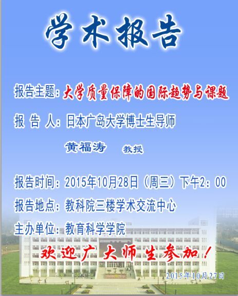 学术报告预告——日本广岛大学博士生导师黄福涛教授学术讲座预告