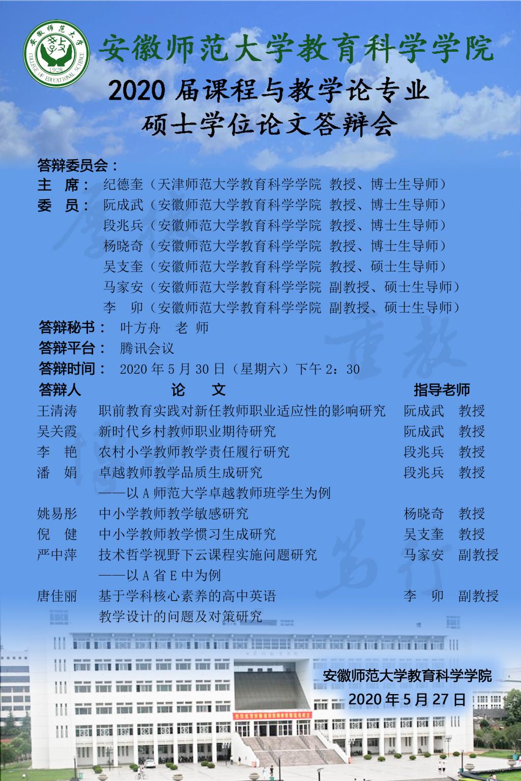 365英国上市官网2020届课程与教学论专业硕士学位论文答辩会