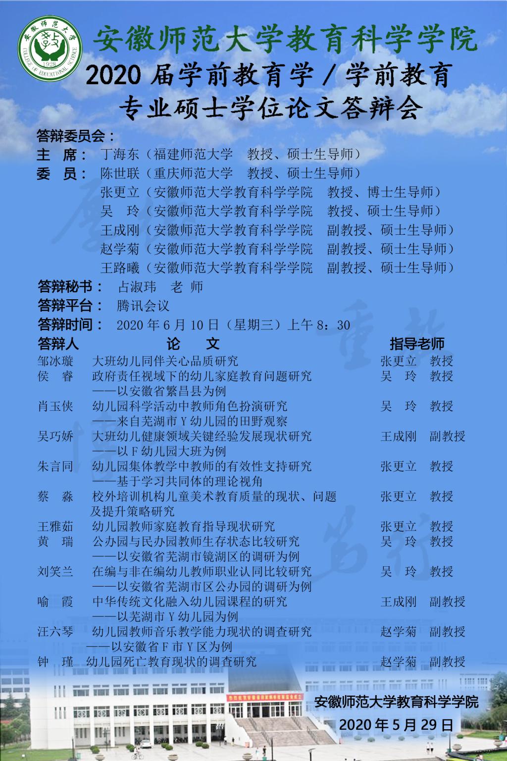 365英国上市官网2020届学前教育学/学前教育专业硕士学位论文答辩会