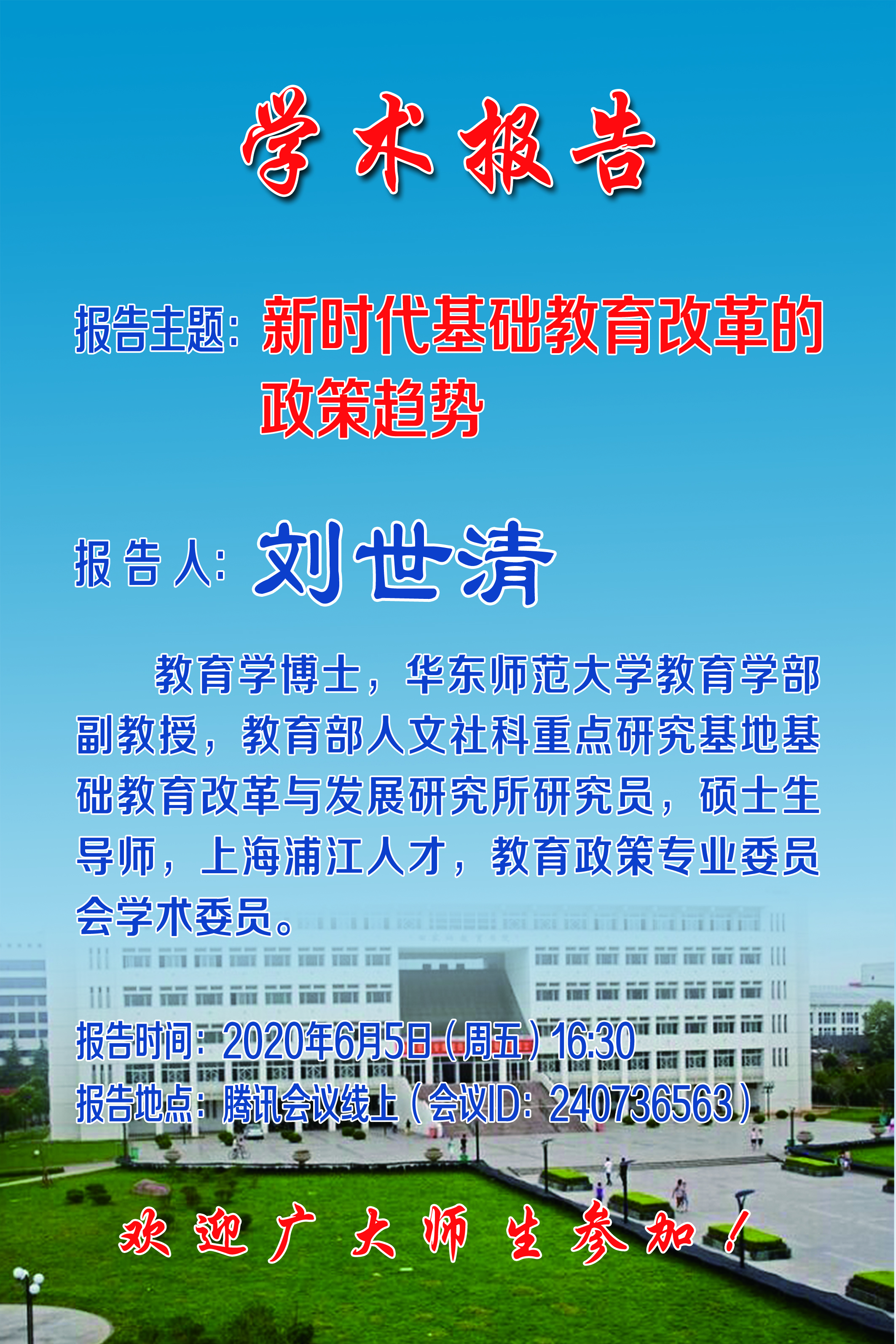 学术报告预告:华东师范大学刘世清报告——新时代基础教育改革的政策趋势