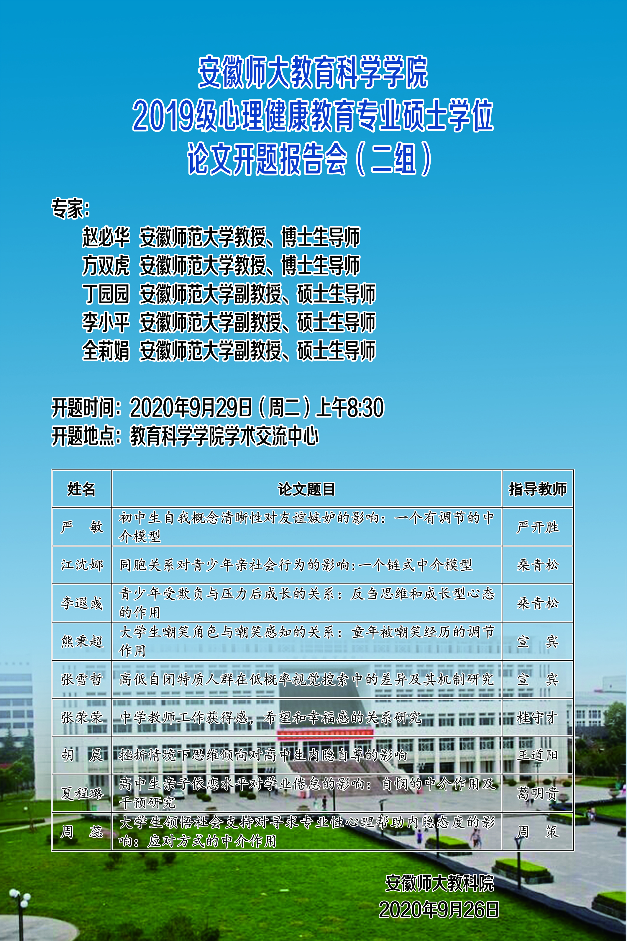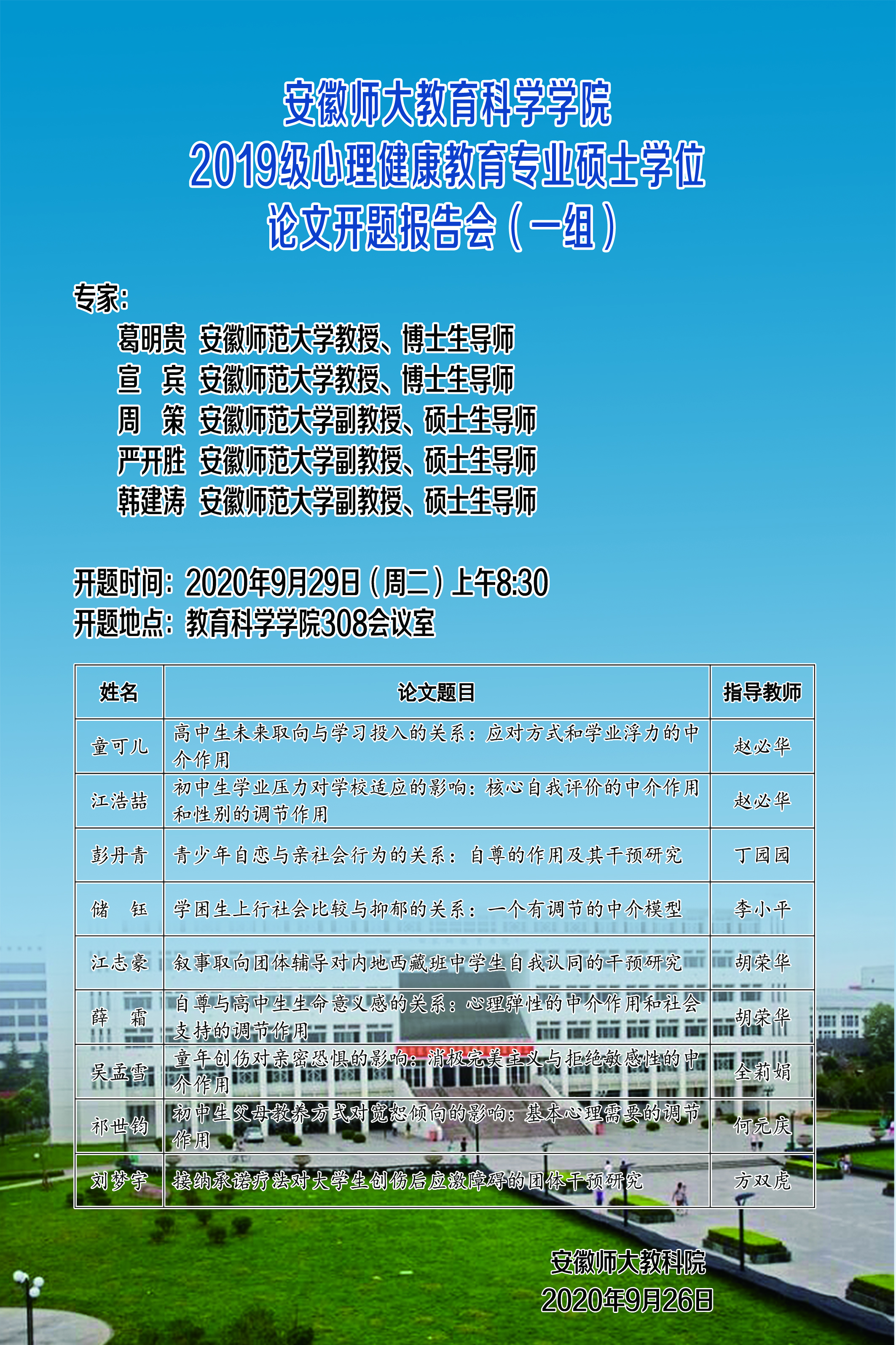 365英国上市官网2019级心理健康教育专业硕士学位论文开题报告会