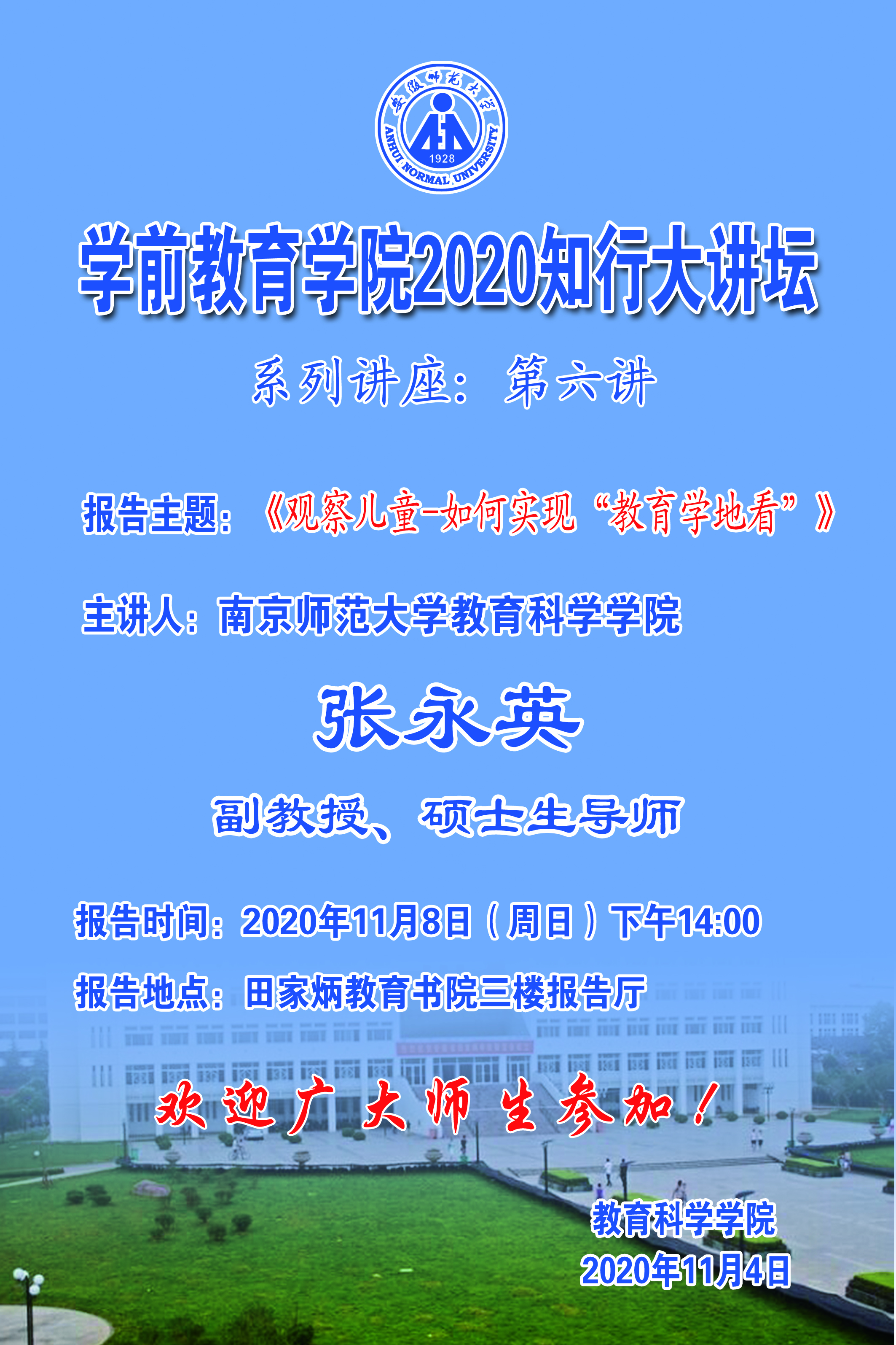 学院学术报告预告:张永英《观察儿童-如何实现“教育学地看”》
