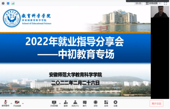 2月26日晚,365英国上市官网通过腾讯会议平台针对2022届毕业生们开展了就业指导分享会——中初教育专场,研究生辅导员谭茹轩老师参加了此次分享会,近60名硕士研究生在线交流学习,院研究生会校友部成员王宇威主持。