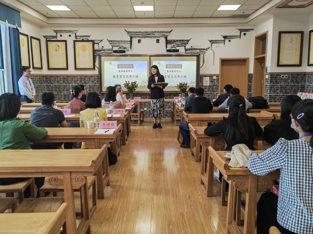 总结会上,教学服务中心召集人王诗琪对教育实习工作进行了小结,她回顾工作的点点滴滴,肯定了10名同学在教育实习过程中的表现。接着,教育学专业负责人徐赟用“祝贺”“感谢”“期待”三个词分别表达了对实习生在疫情背景下完成实习任务的祝贺、对清华附中合肥学校提供实习机会和各项保障工作的感谢,以及学院与实习学校今后合作的期待。随后,李雅馨同学作为实习生代表发言,从教研、教学、班主任工作三方面回顾收获,并对实习学校表达了真切的祝福。