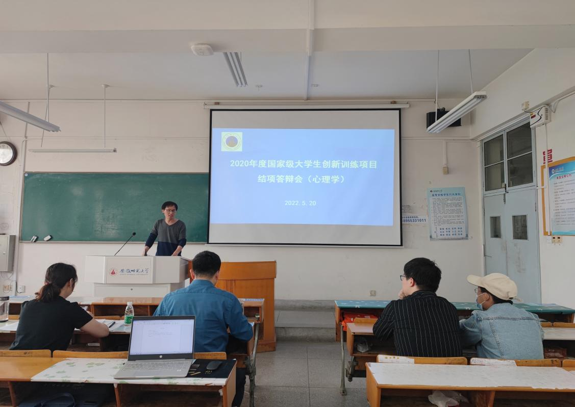 本网讯(教科院 黄雅芬)为加强对大学生创新创业训练项目的管理,提高项目实施效果,切实增强学生的创新创业能力,5月20日下午,心理学专业在田楼8211教室开展2020年度国家级大学生创新训练项目结项答辩会。本次活动邀请了三位心理学专业教师担任评委,分别是何元庆副教授、全莉娟副教授和王礼军副教授,对参加答辩的四支研究团队进行现场评审和指导,会议由心理学专业负责人王礼军副教授主持。