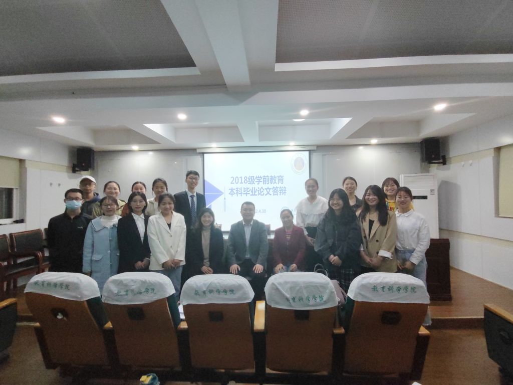 本网讯(教科院 戴国强)2022年4月30日下午,我院2018级学前教育专业在田楼B座308、313学术交流中心、408和412会议室分四组开展本科生毕业论文答辩工作。