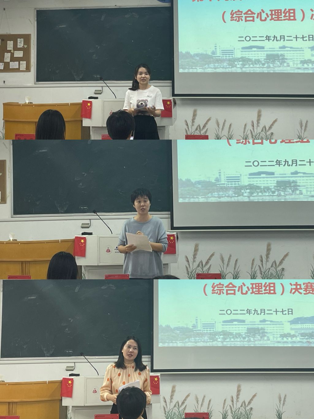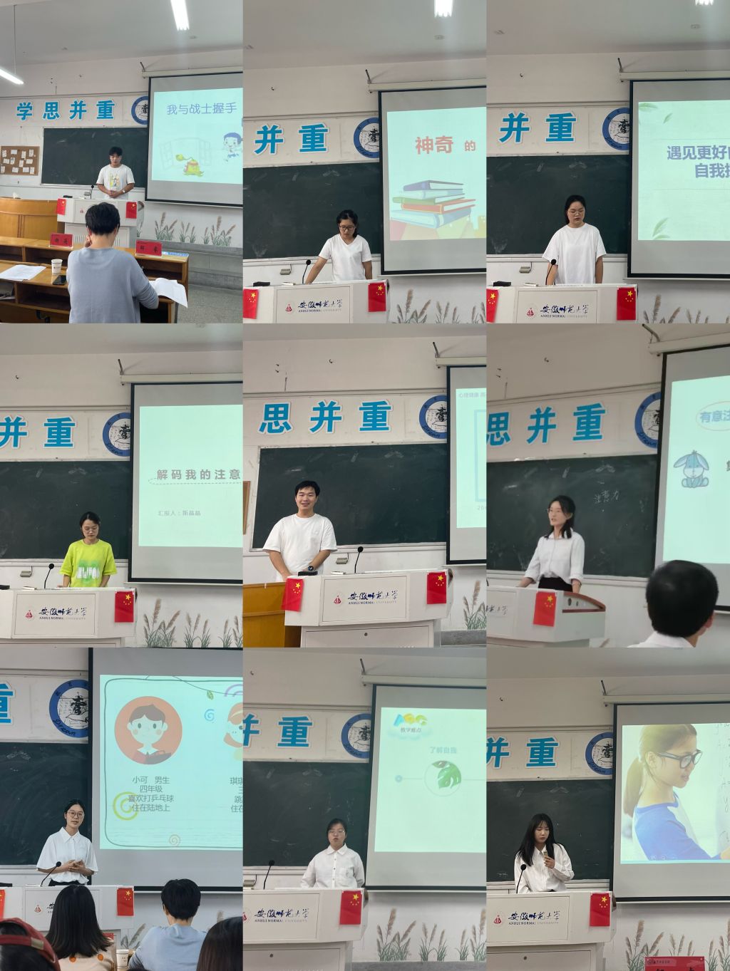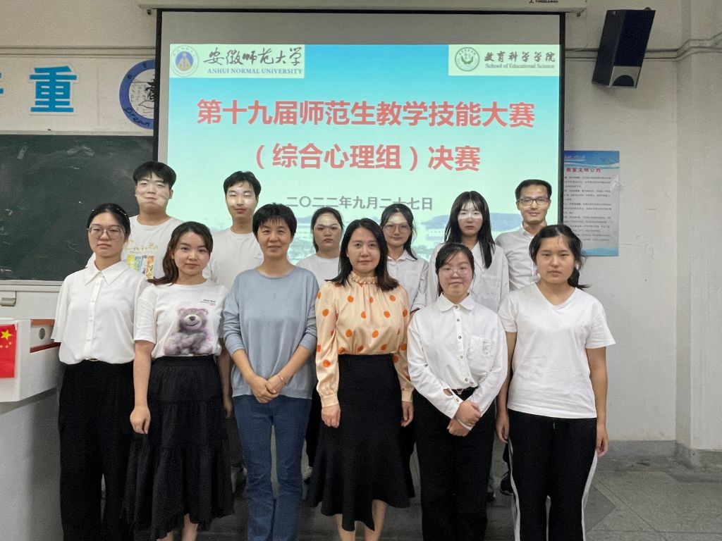 本网讯(教科院)为进一步提高心理学专业师范生的教学技能水平,加强对师范生的能力培养,我院心理学系于9月27日下午在田楼408教室举办第十九届师范生教学技能大赛(综合心理组)决赛,邀请师大附中谢莉老师、芜湖一中邹睿老师和芜湖华强中学郭传丽老师担任本次大赛的评委。会议由心理专业负责人王礼军老师主持,专业何元庆副教授、谢宇副教授、金剑博士等老师,以及20级全体心理学本科生参与此次活动。