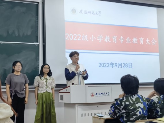 随后,班主任陈元龙、吴颖、杨俊铨老师发言,他们用幽默的语气告诉同学们,芜湖人杰地灵、风景宜人,师大学风优良。他们希望同学们能够以梦为马,不负韶华。他们愿意和同学们并肩前行,助力同学们专业成长,共同为乡村教育事业添砖加瓦。