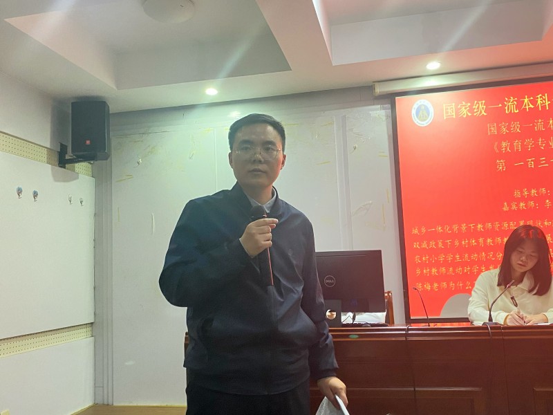 本次专业论坛张紫涵小组以暑期社会实践报告作为汇报主题,分别从教师资源配置、体育教师教学活动发展、学生流动及教师流动角度对乡村教育进行研究。第一位汇报人彭澜根据《城乡一体化背景下教师资源配置现状和途径探究》的主题展开论述,通过整理2016年至2022年间的相关文献,梳理已有研究热点、研究现状以及研究路径,并对未来研究方向作出合理展望。第二位汇报人葛帅晴以《双减政策下乡村体育教师教学活动开展的调查研究》为题,对“双减”政策下乡村体育教师的教学活动与教学积极性进行调查,并对教师自身能力发展与教育活动的关系展开分析。第三位汇报人张紫涵依照《农村小学学生流动情况分析——以X县Y村学校为例》的主题,从学生流失与学生回流两个方面出发,分析农村小学学生流动现状、特点和原因,探讨应对学生流失的相关对策。