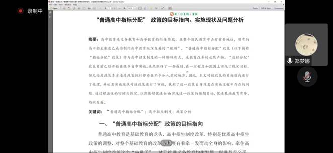 四、郑梦娜同学—《“普通高中指标分配”政策的目标指向、实施现状及问题分析》