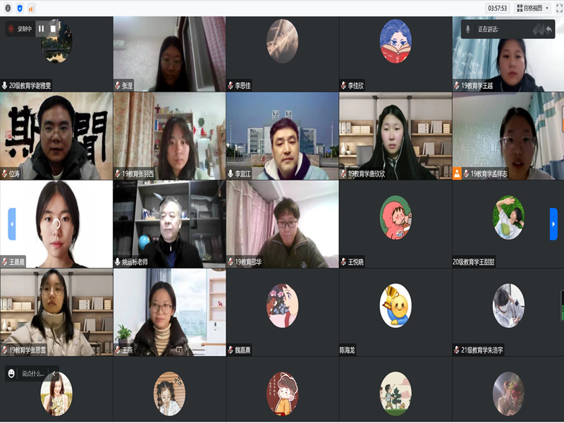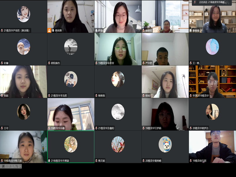 本网讯(教科院 谢雅雯)为做好对本科生毕业论文工作的过程管理,不断提高毕业论文的质量和水平,教育学专业于2023年1月11日晚,在线上举行2019级第一轮毕业论文开题报告会,19级、20级、21级全体本科生到场参加。按照指导教师回避本人指导学生为基本原则,专业将29名同学分为三组,每组邀请3名开题指导教师。出席本次论文开题会的教师有李宜江、姚运标、辛治洋、陈娜、滕曼曼、杨俊铨、陈晨、位涛、胡微共9位老师。