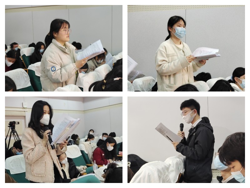 在教师点评环节,嘉宾教师陈元龙首先肯定小组选题切合国家动向、问答形式好以及资料收集全面。然后,他从具体语言表达和内部逻辑关系两个方面提出疑问,并针对每个小组成员的汇报文本提出针对性的改进建议。紧接着,嘉宾教师吴支奎对主题选择、问题聚焦和形式表现三个方面表示认可。其次,他就小组成员文章中的优点与不足依次进行具体的阐述。