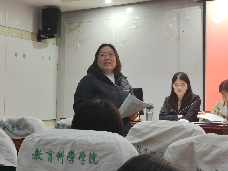 第三位汇报人李佳欣依照《小学课后服务管理的问题、原因及对策研究——基于芜湖市三所市区小学的调查》的主题,从师资队伍、服务经费、设施设备、服务安排和制度保障五大方面出发,分析小学课后服务管理的现存问题,思考提高小学课后服务管理水平的可行对策。第四位汇报人李思佳以《课后服务政策文本的比较研究——基于芜湖市镜湖区、弋江区、上海市金山区、奉贤区的区级政策文件》为题,借助政策文本分析法和比较研究法,以罗斯威尔的供给型、需求型和环境型的政策工具为依据,对四个地区发布的课后服务政策文件进行分析与比较。第五位汇报人胡政围绕《小学课后服务学生满意度调查研究》这一主题,通过开展学生课后服务满意度调查,了解满意度情况并揭示其影响因素,进而阐述提高课后服务学生满意度的合理化建议。