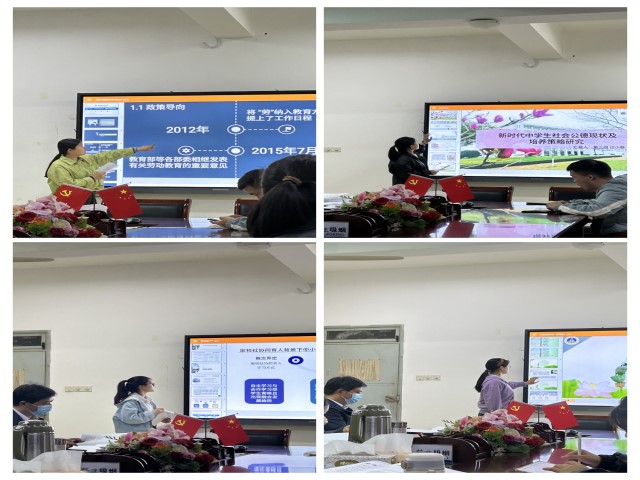 本次答辩会共有七个项目小组参加,其中6项国家级大学生创新创业训练计划立项、1项校级大学生创新创业计划立项,实现了“人人参与,全员覆盖”。项目选题丰富多样,涉及中学生社会公德、音体美课程实施、劳动教育、中小学办学条件、小学美育实施、中小学学习观、中学思想政治教育等,现场答辩流程分为PPT陈述、专家提问、学生作答三个环节,各项目汇报人从项目背景、研究内容、项目成果等方面进行汇报。