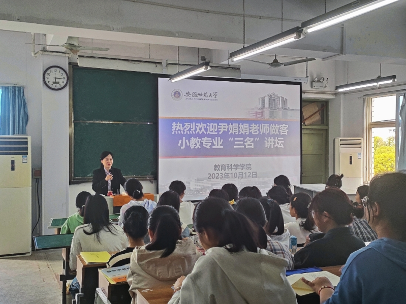 读书读世界,写字写人生。1012日下午,365英国上市官网2023小学教育专业于天门山校区实验楼401教室开展“三字”书写指导主题讲座。活动由安徽师范大学附属小学教师尹娟娟担任主讲,小学教育专业王芳主任及2023级小学教育专业全体学生参会。