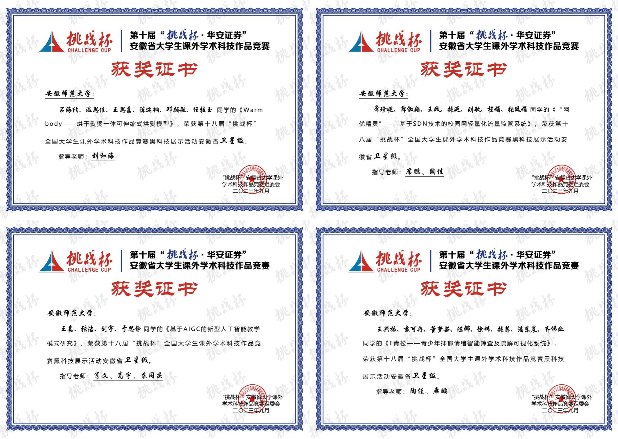省赛阶段,教育技术学专业本科生在“黑科技”赛道获卫星级4项;在“红色专项”赛道获省级一等奖2项,省级三等奖2项。其中由许之民、吴钦金两位老师指导的红色专项活动作品《释放红色力量,点亮振兴之路——红色资源在柯村多元价值的探索》与来自全国众多高校的优秀作品激烈角逐,最终在国赛阶段斩获国家二等奖,刷新了我院在该赛道的最好成绩。
