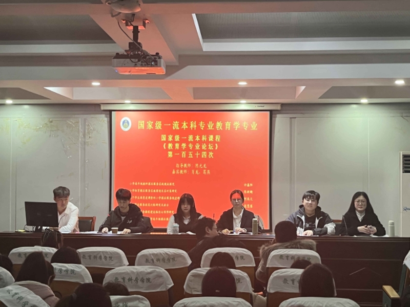 12月17日晚,国家级一流本科专业建设点教育学专业第一百五十四次专业论坛在学院三楼学术交流中心顺利举行。莅临本次专业论坛嘉宾教师有肖龙老师以及葛燕老师和小组指导教师陈元龙老师。21级、22级教育学专业全体本科生到场参加,并由21级教育学孙丹阳担任主持人。