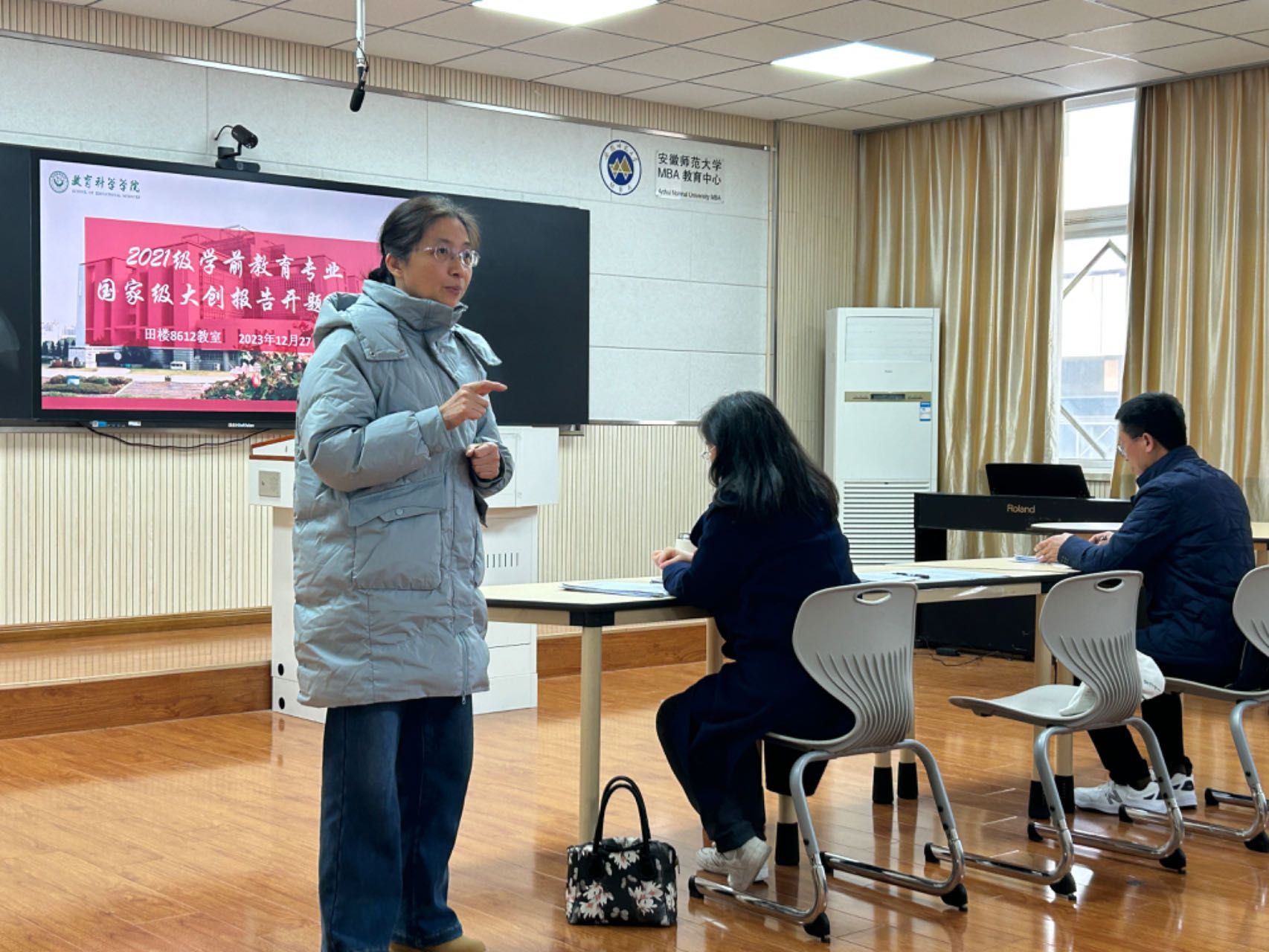 2023年12月27日下午,学前教育专业在田楼8612教室举行2023年大学生创新创业训练计划开题报告会。参加本次开题报告会有吴玲、朱立新、王成刚老师。21级学前教育大创项目全体成员到场参加,会议由吴玲老师主持。
