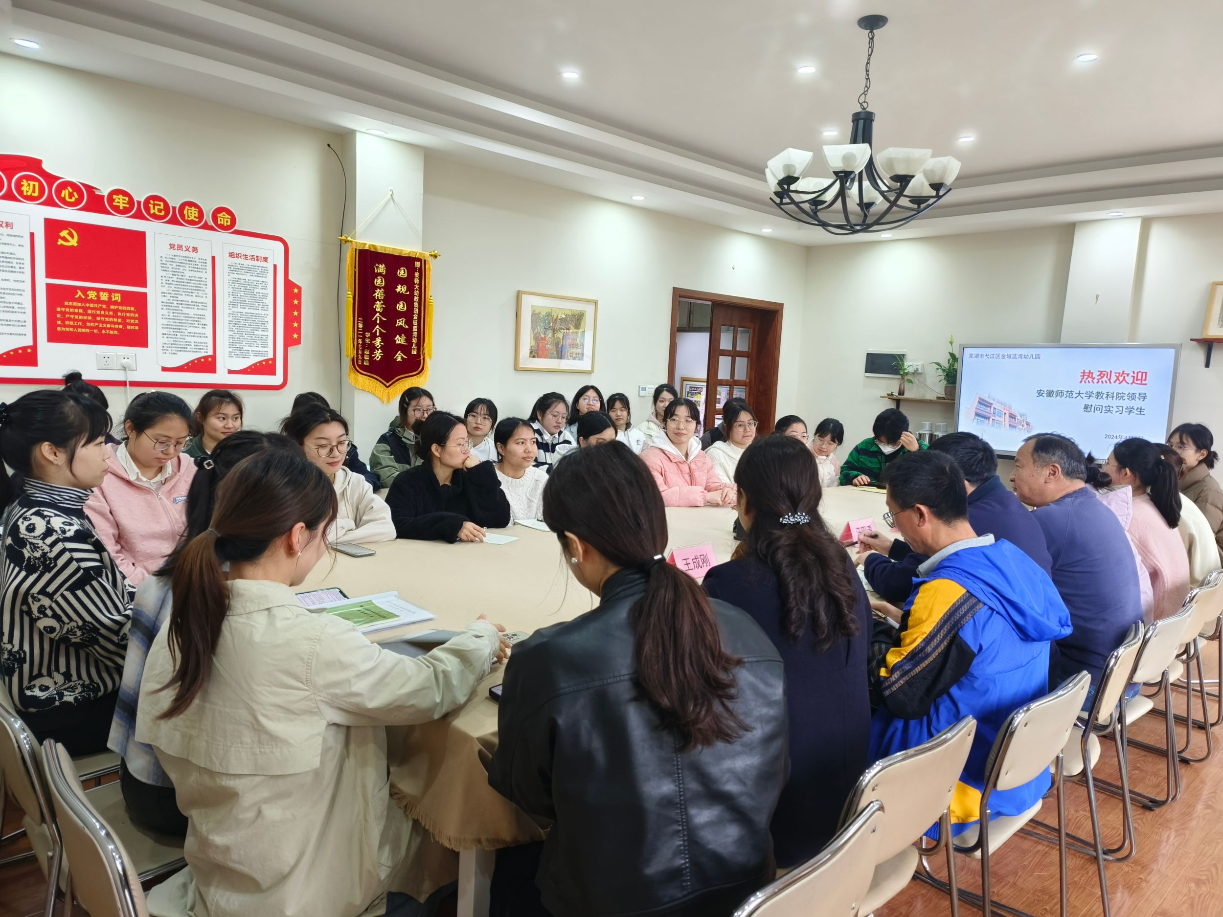 为扎实推进学校基础教育振兴行动计划,全面了解2020级学前教育专业本科生实习情况,4月8日上午学院副院长韩建涛、教学办公室汪四清老师、王成刚老师和专业实习指导教师吴玲老师赴弋江区金域蓝湾幼儿园开展教育实习检查工作。