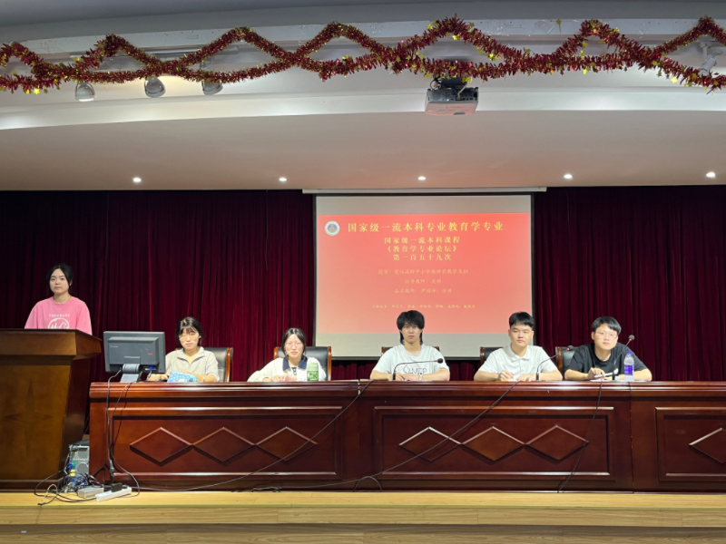 6月1日晚,国家级一流本科专业建设点教育学专业第一百五十九次专业论坛在图书馆报告厅顺利举行。莅临本次专业论坛嘉宾教师有安师大附属小学副校长尹丽峰老师、教育学专业徐赟老师和小组指导教师吴颖老师。21级、22级教育学专业全体本科生到场参加,并由22级教育学李思凡担任主持人。
