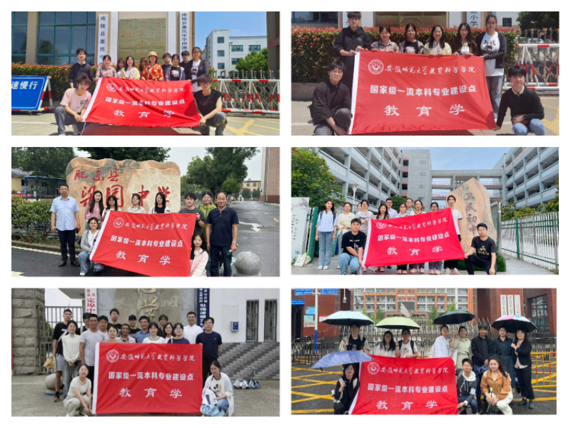 为培养学生的合作探究意识和实地调研能力,了解一线教育的真实情况,掌握教育调查的基本原理和方法,教育学专业开设了《教育调查》特色实践课程。5月27日至31日,2021级、2022级教育学专业全体本科生共73人分为13个调查小组,赴安徽省肥东县、肥西县、全椒县、潜山县、南陵县、郎溪县、东至县七个县区的二十所乡村寄宿制学校开展2023-2024学年第二学期的《教育调查》实践课程。此次调研由各小组指导教师吴支奎、姚运标、徐赟、柳丽娜、杨俊铨、肖龙、江珊、胡微、陈晨、陈元龙、位涛、吴颖及郑梦娜博士带队参与,课程负责人滕曼曼和十位研究生助教一同前往。
