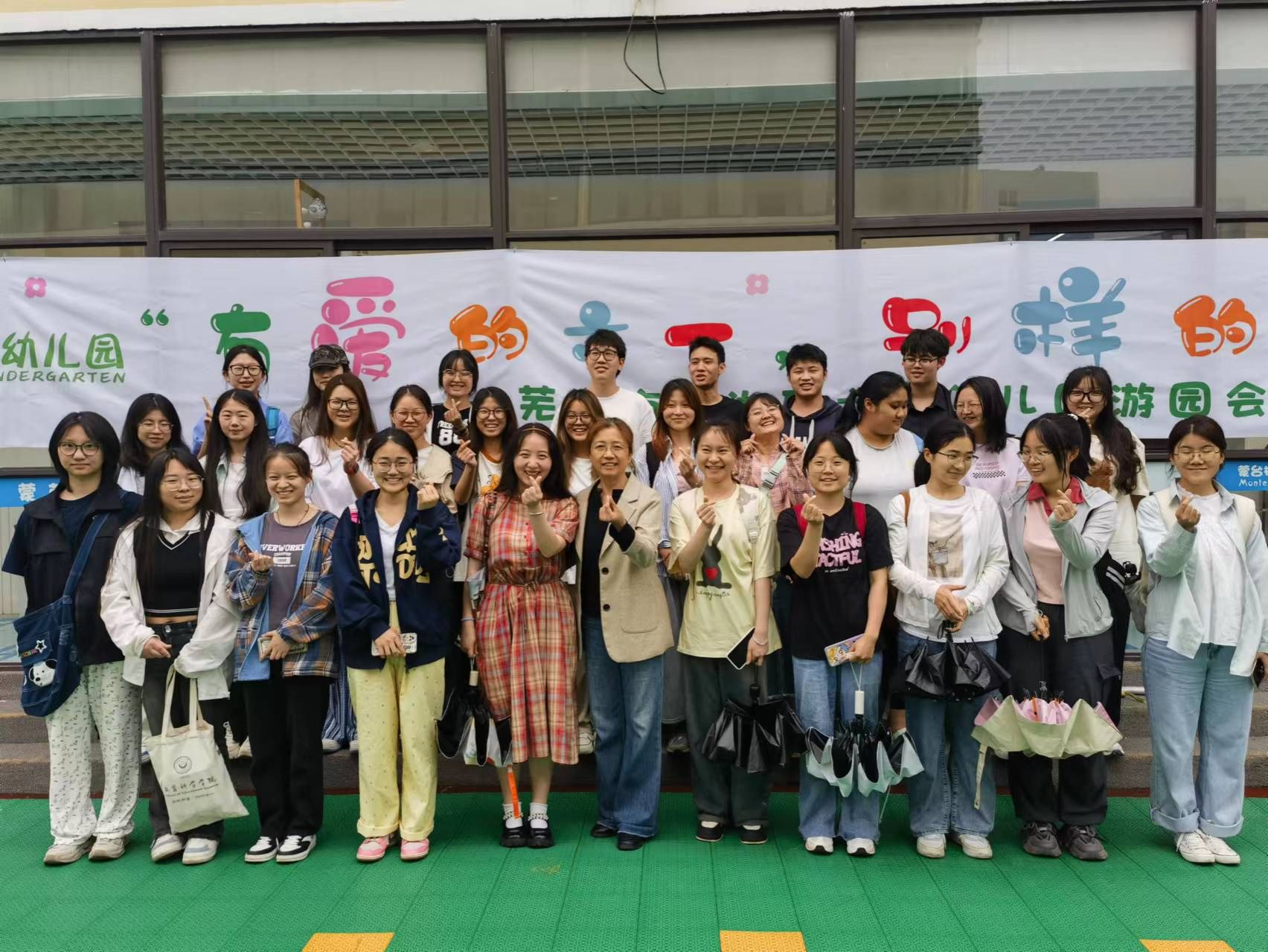 为增进学前教育师范生对幼儿园教育教学活动和一日活动环节的了解,提高自身专业素养,5月31日我院2022级学前教育1班全体学生在吴玲老师带领下前往芜湖市六一幼儿园参与了庆六一的“游园会”活动。