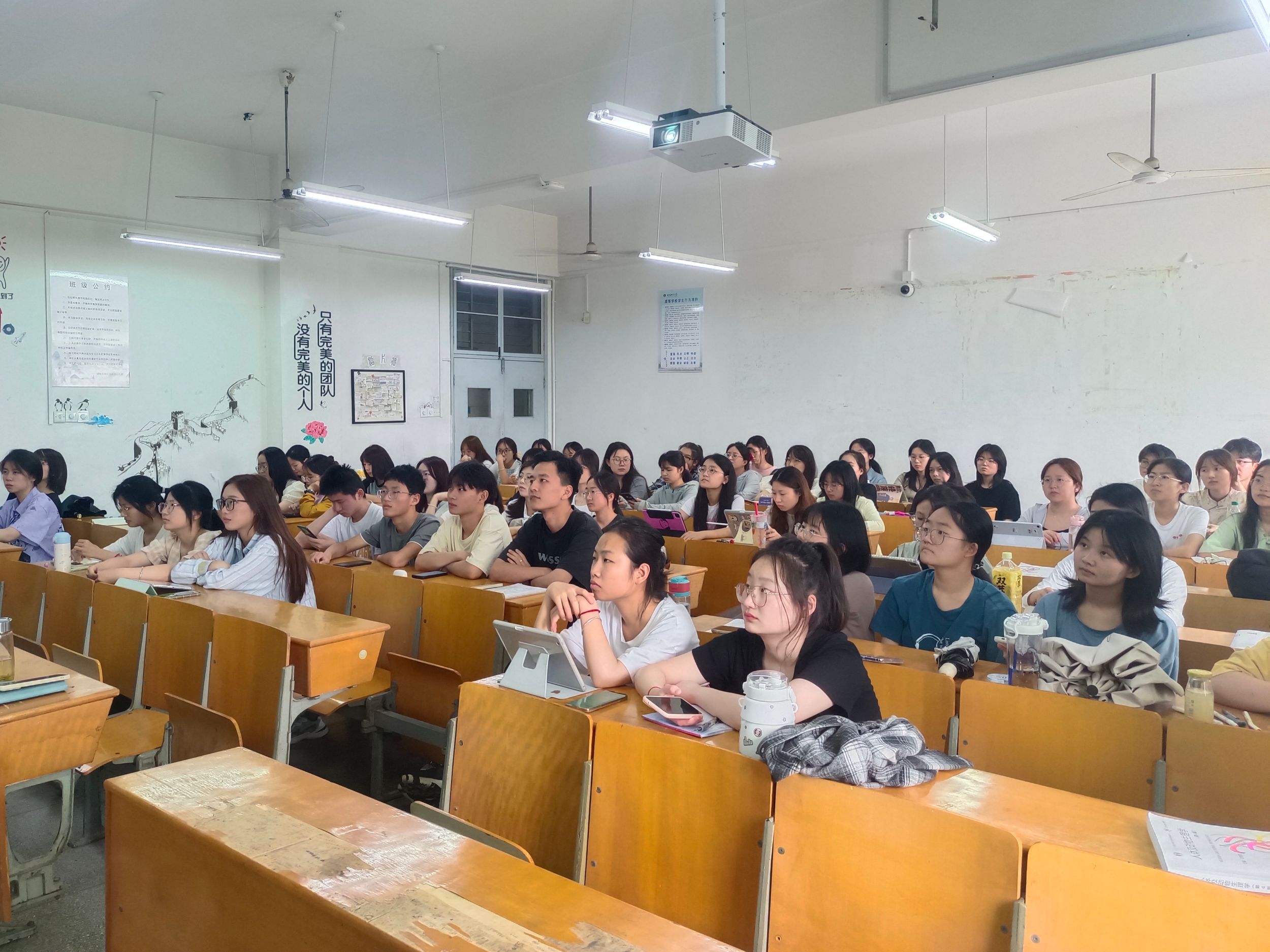 肖龙结合自身经验提出了现阶段学生们所面临的发展问题,强调了实习对于师范生专业学习和技能提升的重要意义。鼓励大家在实习期间,将切身观察到的教育现状,同专业的理论学习有机结合,进行深入的思考,不断提升自我的专业技能。同时,提醒准备考研的学生充分利用完整的暑假时间认真备考,为实现自己的理想目标做出扎实的行动。