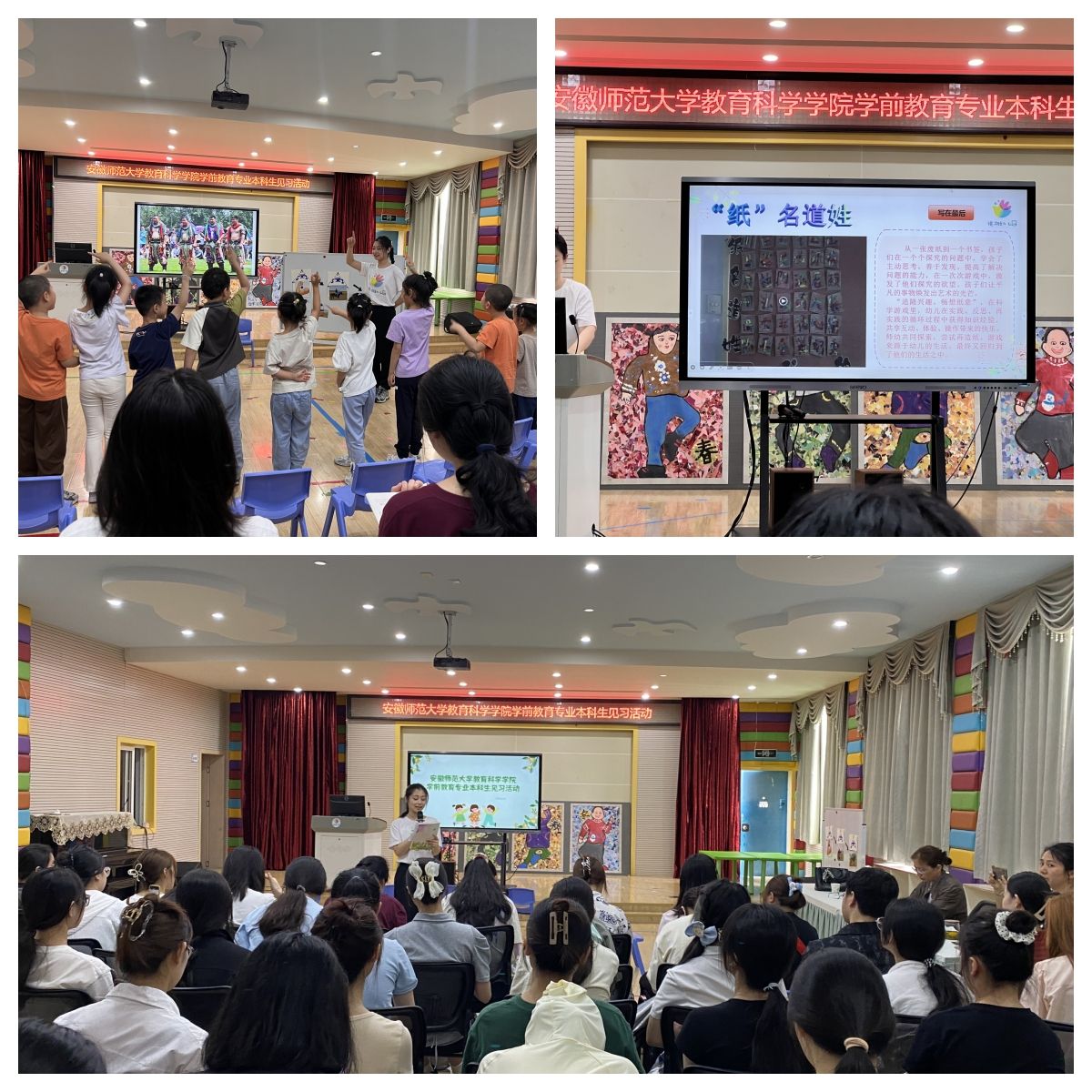 增进学前教育专业学生对幼儿园实践一线教育活动、环境创设真实情况的了解,提高专业实践能力。6月20日我院2022级学前教育2班(师范)全体学生在赵学菊老师和吴玲老师的带领下前往芜湖市镜湖幼儿园进行了观摩活动。