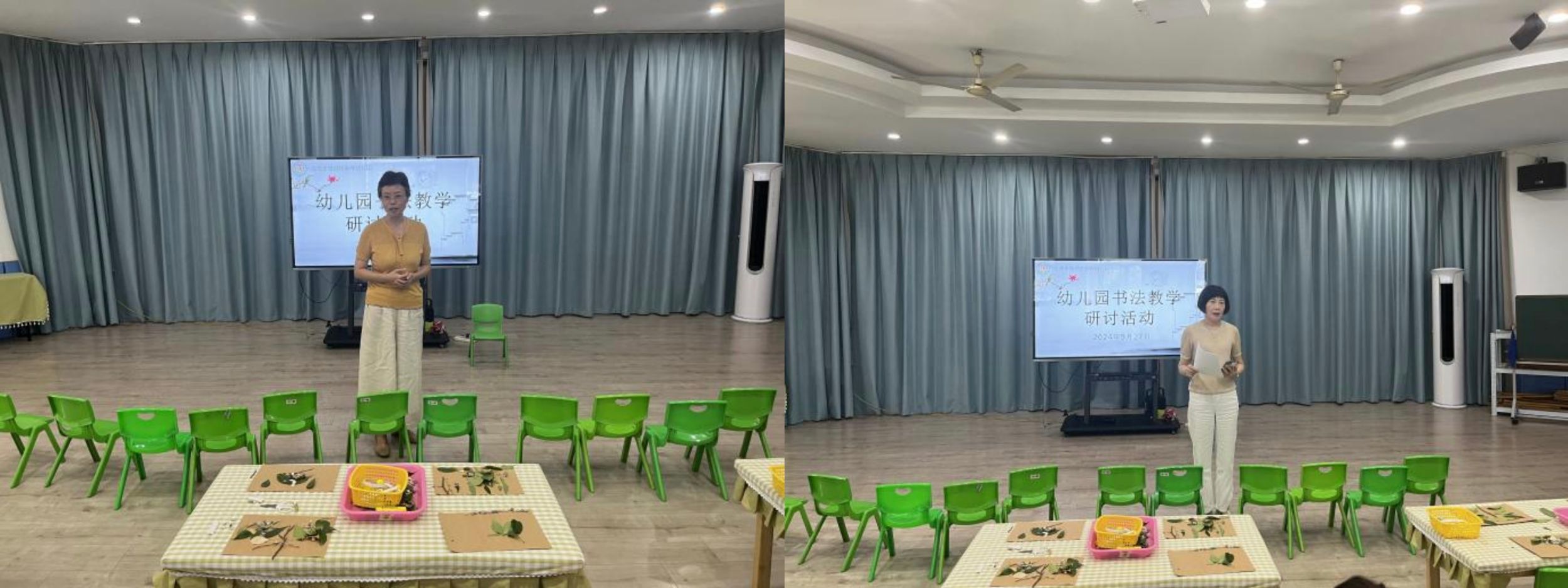 公共课展示开始,陈笑笑老师组织中班科学活动《有趣的风》,通过播放风声、感受电风扇的风力变化、认识不同种类的风(如微风、大风、狂风、龙卷风)及模仿风的身体动作游戏,带领孩子们用身体动作全方位体验“风”的奇妙。孩子们还通过观看视频初步感知汉字“风”的外形特征,感受书法的艺术之美。整个过程生动有趣,孩子们都乐在其中。