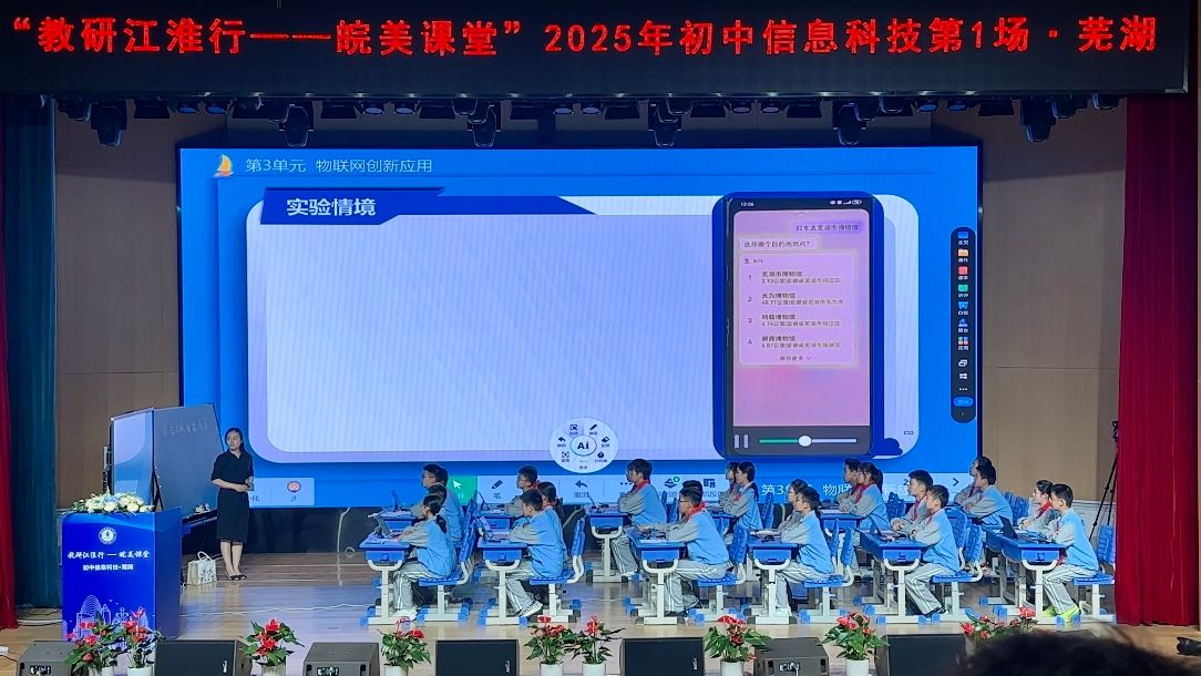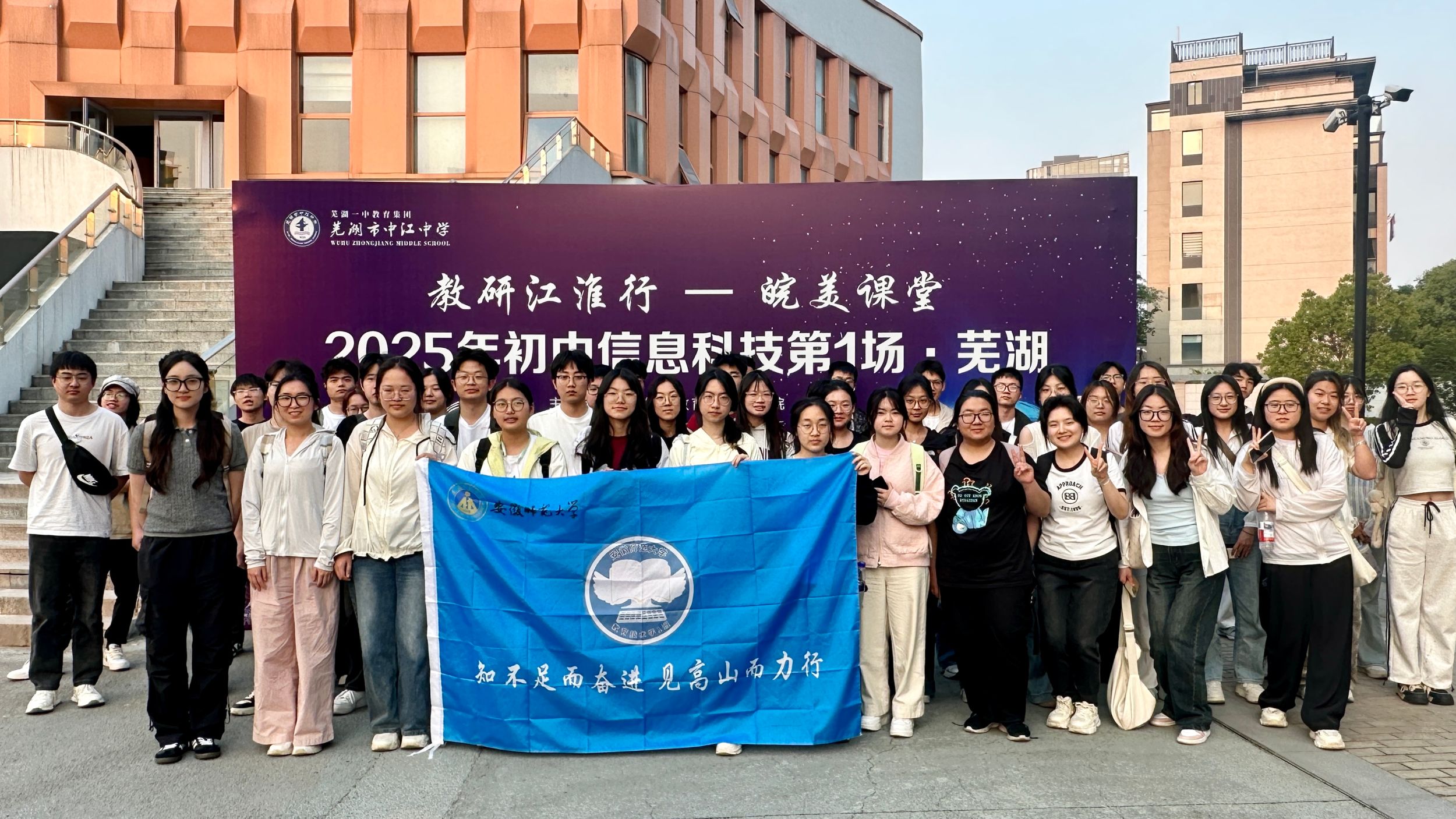 在当今数字化教育蓬勃发展的时代,为促进教育技术的交流与创新,提升信息科技教学质量,为全省信息科技教师搭建专业学习与交流平台,推动教育技术的前沿发展,4月29日,2023级教育技术学专业全体学生在肖文老师的带领下,参与了安徽省教育科学研究院在芜湖市中江中学举办的“教研江淮行——皖美课堂”2025年初中信息科技研习活动。