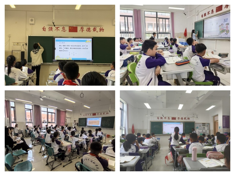 随后,为深入了解实习生的实习质量,陈娜老师、柳丽娜老师和清华附中合肥学校的指导老师进行了实习生教学观摩活动。刘彤彤的授课内容为三年级数学课《分数初步的认识(二)》。李浩然讲授了五年级数学课《异分母分数加减法》。课后,两位指导老师分别与授课学生进行了深入交流,对他们的课堂设计、教学方法、板书设计等方面进行了细致点评,既肯定了优点,也指出了存在的不足,并提出了具体的改进建议。实习学生们表示,老师们的指导让他们受益匪浅,将认真总结反思,不断改进自己的教学方法,提高教学质量。