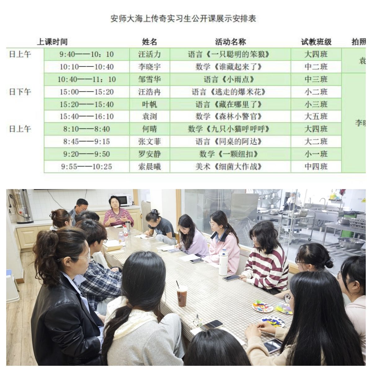 根据实习和公开课程展示的安排,每个同学在前期指导教师指导下进行公开课打磨,把最佳的实习状态展示出来。每天公开课展示每次展示活动结束,学院和幼儿园指导教师、听课的实习生同学之间就每个人的活动进行逐一点评,并就每个活动提出详细的改进意见。