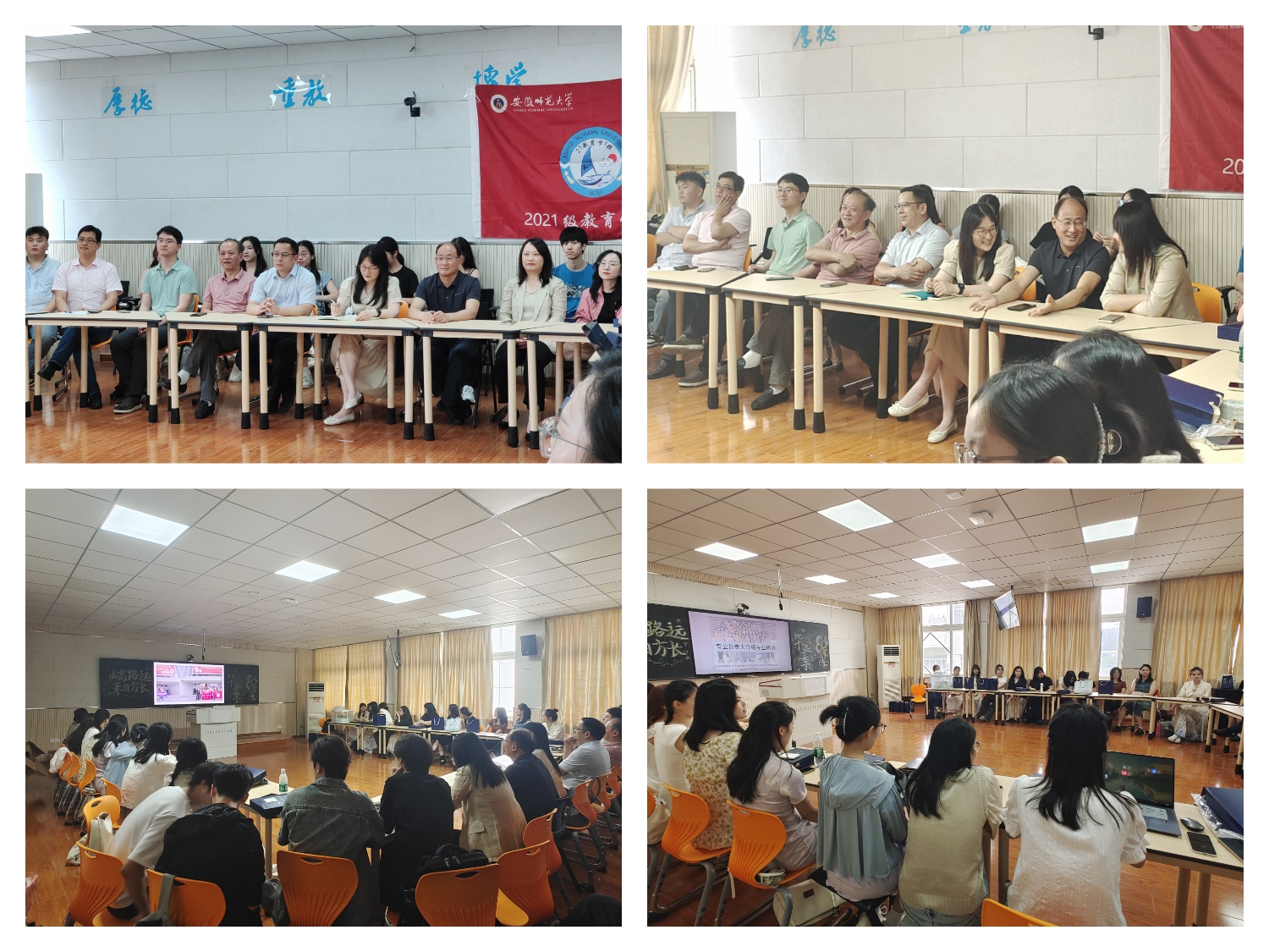 话别会开始,主持人孙宇简要介绍本次会议的流程与参会教师。接着,两任教育学专业负责人徐赟、陈娜依次发言,徐赟回忆了与同学们四年相处的点滴,希望同学们保持“仁”与“义”,走出校园也不能忘记初心;陈娜分享了大二为同学们讲授《教育逻辑学》的感触,感慨同学们由稚嫩一点点变得成熟并向大家寄予美好的祝福。班长孙宇借助PPT汇报了班级建设情况,展示班级同学在各个方面获得的荣誉及成就。随后,辅导员赵茜深情回顾了同学们四年成长的变化,介绍了班级纪念品的设计思路,并赋予同学们诚挚的毕业祝福。在视频环节,现场播放了精心制作的毕业纪念视频,通过几百张同学们学习、生活的照片,生动再现了2021级学生从入学到毕业的每一个重要时刻。